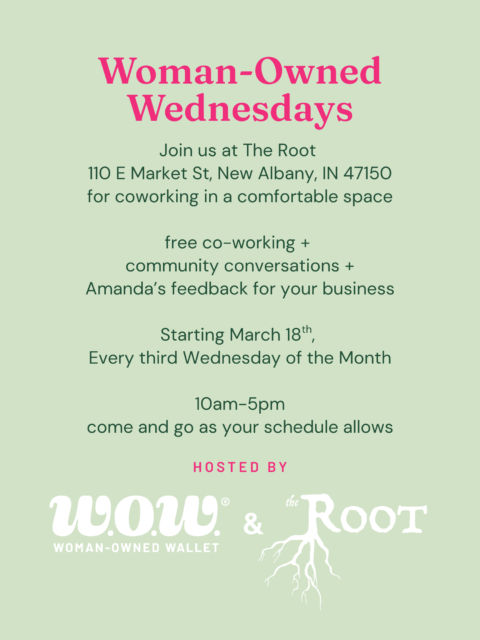 Join us for Woman-Owned Wednesdays at The Root, a beautiful coworking space owned by Brigid and her dad in the heart of Southern Indiana.